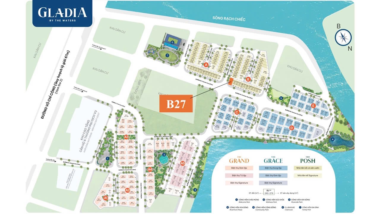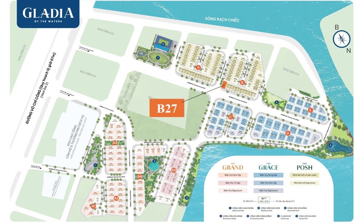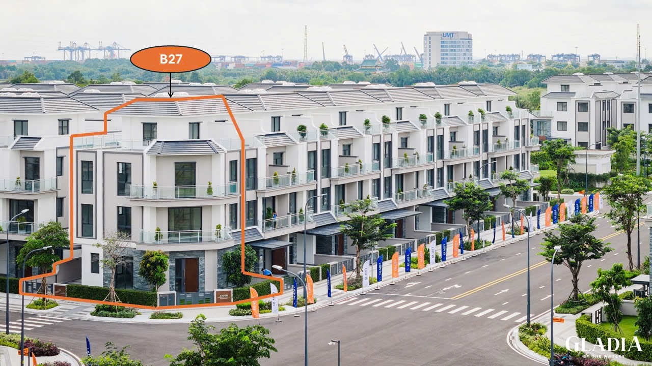 Căn góc 2 mặt tiền đường lớn 25m & 16m, thuộc phân khu The Posh – khu biệt thự ven sông Gladia by the Waters