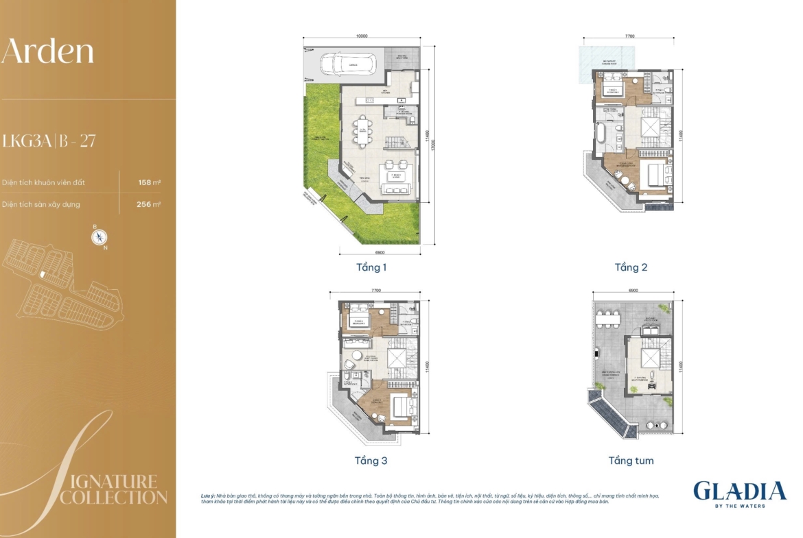 • Diện tích sàn: 256 m² – kết cấu 3 tầng + 1 tum